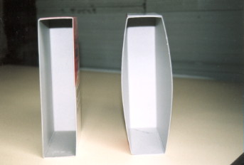 面付けがうまくいかないからといって、これをやってしまうと、下の写真(右)のようにの歪な函になります。
